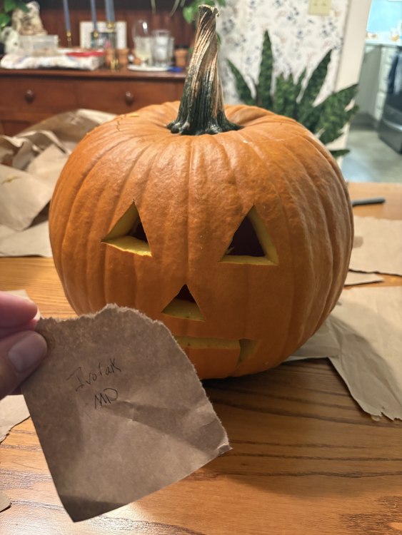 Picked up some pumpkins to carve with the family tonight; mine is the one on the right. Nothing fancy, but had fun!