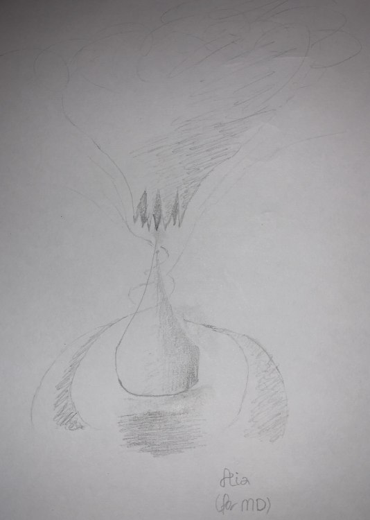 A brief explanation of this concept, as it were, and a sketch below. I am no @Sashimi - so one may have to use of imagination. Above, it were cloud-form of aether, anchored not to the land, yet, its form doth culminate in blades that may pierce of the sacrifice. Below, it were as a floating orb - that similar to that which one may recruit of creatures. From it doth arise a single point. Betwixt this, and the blades of aether, one may place of the creature to be returned to thyself. Do note that neither the orb, nor the cloud, were tied to the land, although it should be anchored in place by the pull of the swirling water-form, drawn into a thin vapour. This were important that one may dissipate of the heat obtained of the sacrifice - as this were not of land, it cannot return that which were of heat, and this were indeed its purpose. -