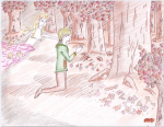 17. Oh that is beautiful simple too I'm working on a drawing as well. I'm not much of an artist but i'm trying xD YES! i got my scanner working ;D The second drawing is the one i am submitting of course. the first is just something i felt like adding Spirit of autumn looking after a forest elf paying his respects to the forest in a sunset. I'll nickname him shem
