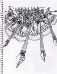 16. [i]just a little section in thanks to MD for helping me grow as an artist. it's provided me some inspiration to draw, something everyone needs in their life. if i get good enough, maybe in the future i'll attempt to put together an avatar pack for approval.[/i] the first began as a guy on a throne, with some dead stuff attached. started to seem like a king of necrovian. ended up removing the guys boots, which pretty much makes it jester...who i don't even know, haha. [attachment=1825:necroking.jpg] the second is a bunch of spartans...just because. [attachment=1826:spartans.jpg] don't know how often i'll update this area, because i have infrequent access to a scanner. just wanted to show some stuff i've been working on recently. also updated Mourn's fullshot picture in my papers, pretty happy with how he turned out.