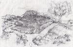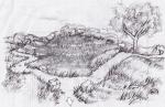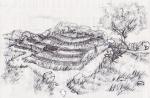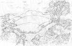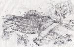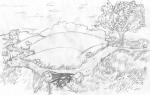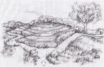 What does contour design look like? These 5 drawings were my original set. I will elaborate on the details of the last two drawings (which include more than contours) further down the thread. I made a very simple cross-section sketch of hillside with contour swales to show how they work.