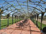 [quote name='Passant the Weak' timestamp='1303838708' post='83450'] I slightly disagree with your saying vines would provide shadow... They wouldn't be high enough if we have a sunny area, because the vines would be cut somehow low enough to limit the grape number and allow the sun to illuminate them with no limitation [/quote] Do a google image search using the term "grape arbor" and you will see grape arbors can indeed provide plenty of shade. I picked a few images to post here to give an idea. We have a limited space to work with and traditional row agriculture systems may not be suited to the diversity of elements we wish to include. A healthy ecosystem is not necessarily one that provides peak production in the short term. In my own experience, grapes grown long and trained to specific types of structures are less productive in the short term than cultivated rows. At the same time, the grapes' ability to vine out in any direction and be trained can provide for many more functions which can make the garden as a whole more healthy, productive, and pleasant. [quote name='Passant the Weak' timestamp='1303838708' post='83450'] They have basically the same role as rosebushes: they are sensible to the same diseases (oidium or however it is called in English) as the vines. [/quote] I know which disease you speak of, which is the powdery mildew. This can be indeed a pain to deal with. My experience with grapes and powdery mildew is that certain varieties are more susceptible than others. As I understand it, traditional wine grapes often among the more susceptible varieties. As with any fungus, the best way to deal with powdery mildew is to allow spaces for air and sunlight to penetrate the plants and keep the powdery mildew from forming in the first place. This is usually accomplished through hard pruning. One benefit to hillside design is the natural flow of air up hills during sunlight hours (of which we have many in MD). By directing the airflow using windbreak plants and hard structures, we could possibly create what is essentially a wind tunnel, to keep a constant breeze where the grapes grow. If it were a series of grape arbors over top of the path, this could be accomplished so long as there are no sharp turns, especially if the path follows the natural drainage path of the hill, which already serves as a natural wind tunnel.