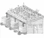 20. The toolshed, featuring a terraced green roof and three tank rainwater catchment. Any artist who'd like to attempt a final version of my rough draft is welcome and encouraged to.