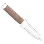 23. Added brown for the handle wrap. Meant to do it as separate layer but accidentally deleted the layer before my most successful attempt to fill w/color. I tried using a low opacity silver or grey color for the blade itself, but every time it just washed out the shading. I thought maybe to just leave the white with shading to give the silver blade color. Final thoughts before upload?