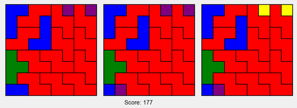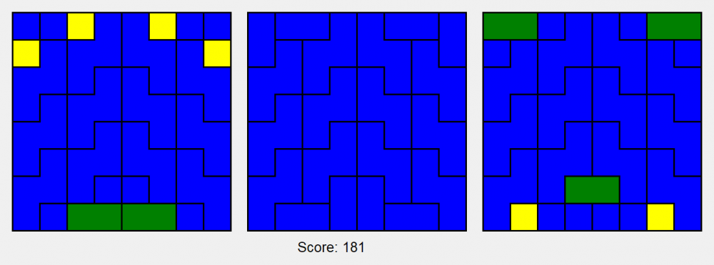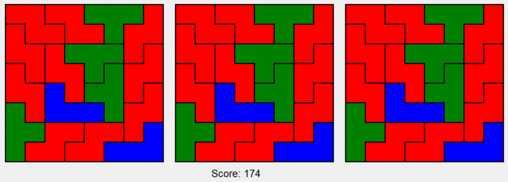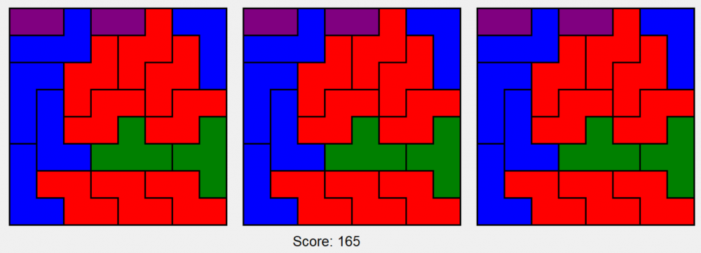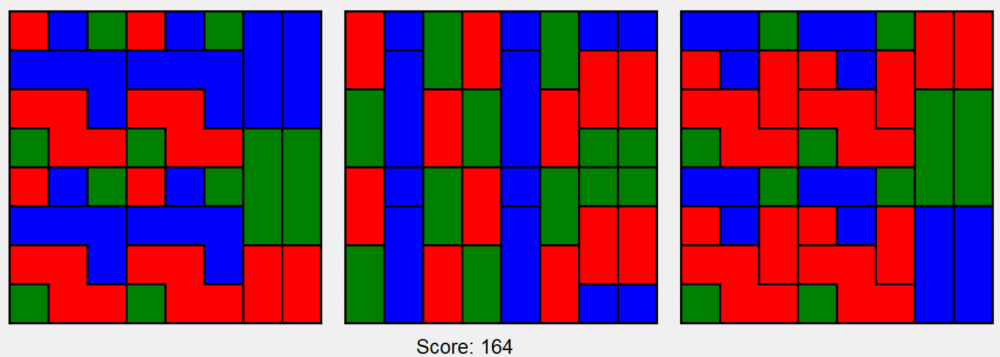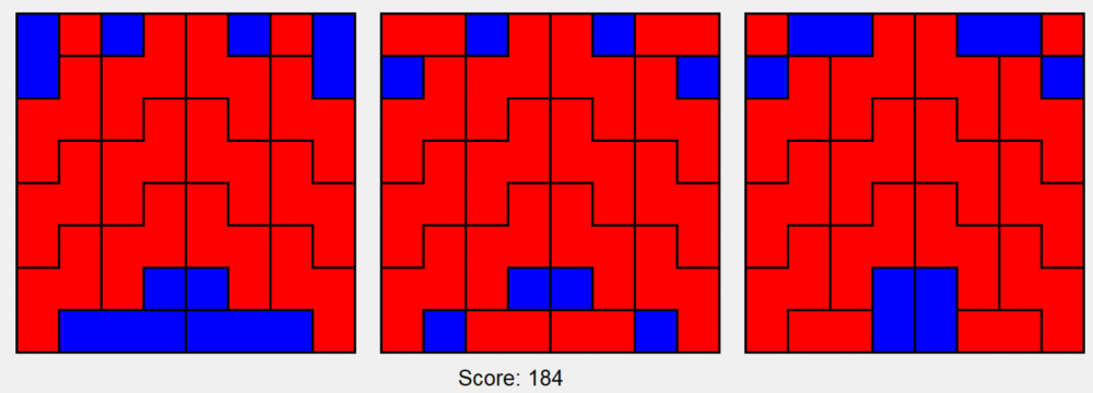 2. Fyrd A solution inspired by actual masonry, resulting in a brick-wall like pattern. However, it also amazes with how high of a score it attained!