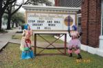This is from New Orleans, around Mardi Gras. We are on our way to march in a parade, which we never found. (We thought we did, and we marched around for a while, but we found out later we'd been in the wrong place. Yeah, I can't really explain it). We stopped because we saw this sign in front of a Baptist church, and felt like it really spoke to us. I'm on the right. We are trying to look scared about going to hell -- I know it didn't work, but it can be hard to pull off a good look of terror when it's 9.00 am and you're already drunk.