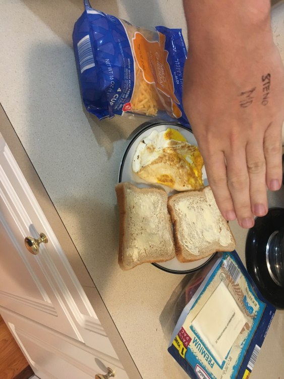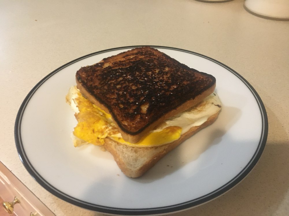 Okay, so I made typical "American I-can't-cook fried sandwich". It needs (besides an evil mind to commit egregious damage to MaGoHi's arteries): 2 eggs // 2 slices of bread // some cheddar (colby jack works to) // some swiss cheese(or any mellow cheese)/ butter,margarine, or vegetable oil // sausage or bacon (or sometimes beef) // a pinch (or dash, whatever is smallest) of salt // 1.5 tablespoons of fresh dices bell peppers (or 1 table spoon of diced onions if beef) 1. Basically you start off by heating your pan on the stove (opening your browser) 2. cook your meat until it is brown (get your fingers ready-open forum) 3. Crack open your eggs --> I leave in same pan, because what is heart disease? (This is you taking your mind from outside MD, breaking down your mental barriers, and entering into the realm) 4. Scramble your eggs a little (you don't need to keep your ego defenses up while in the realm) 5. While eggs are cooking, let some of your cheese start to warm to room temperature-->so it is softer You should lightly spread your butter/margarine/oil over 1 side of each slice of bread Also dice your peppers or onions (You are getting ready to get into the character of your RPC) 6. Put eggs to side with meat. Now, put 1 slice of bread, coated side down on pan <reduce your heat at this stage>Put your sharper cheese down, after cheese begins to melt, put the diced peppers or onions on the cheese (This is you bringing your creature into the NML, you're waking up-I like to imagine every time a player logins they briefly wake up at GoE and then go to last location) 7. Put your egg on top of vegg, and your meat on top of the egg. <you want to hurry at this point, so you don't burn bread> (I have no idea what this symbolizes -checking to see if all of your creatures are dead when you idled in MDP last night?) 8. Put your mellow cheese on top, and the last slice of bread with coating up. When bottom bread is stiff, flip sandwich cook until bread is stiff again(You've checked your inbox now, and forum, you're almost ready to start playing for real) 9. Remove from heat, sprinkle your salt on the bread opposite from the peppers/onions <otherwise the flavor profile is monotonous> -->eat after letting cool for 30 seconds (Now you can chat in the window, or go back on that hunt/recruit and saccing run that you were in the middle of the night before) 10. ENJOY! This is how you make it. If I can make it, anyone can. I recommend you have some fruit with it, and just water, you don't need anything else that's unhealthy for you at this point. Please note that I burned mine (I was making coffee and forgot to turn off the kettle) in the pictures (I also ran out of bacon, so I used ham as a lighter meat, though my wife said a dash of sliced chicken or avocado works better) For those of you wishing to die: substitute the bread for potatoes (read hasbrowns). My wife suggests having fresh celery or grapes on the side so you have a different texture profile and can wash the palate to fully enjoy each, juicy, protein-filled bite.